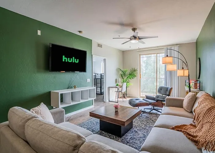 The 52 ft² Near Asu And Brewery Gym Pool Wd Parking Apartment Tempe is located about a 25-minute walk from the night School of Rock Tempe Club and 3.1 miles from Casino Arizona. Wi-Fi is available for guests' business or leisure needs.